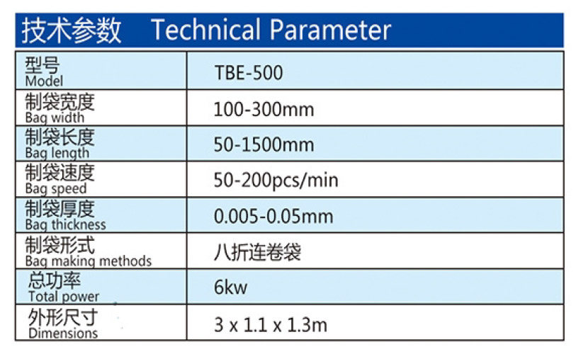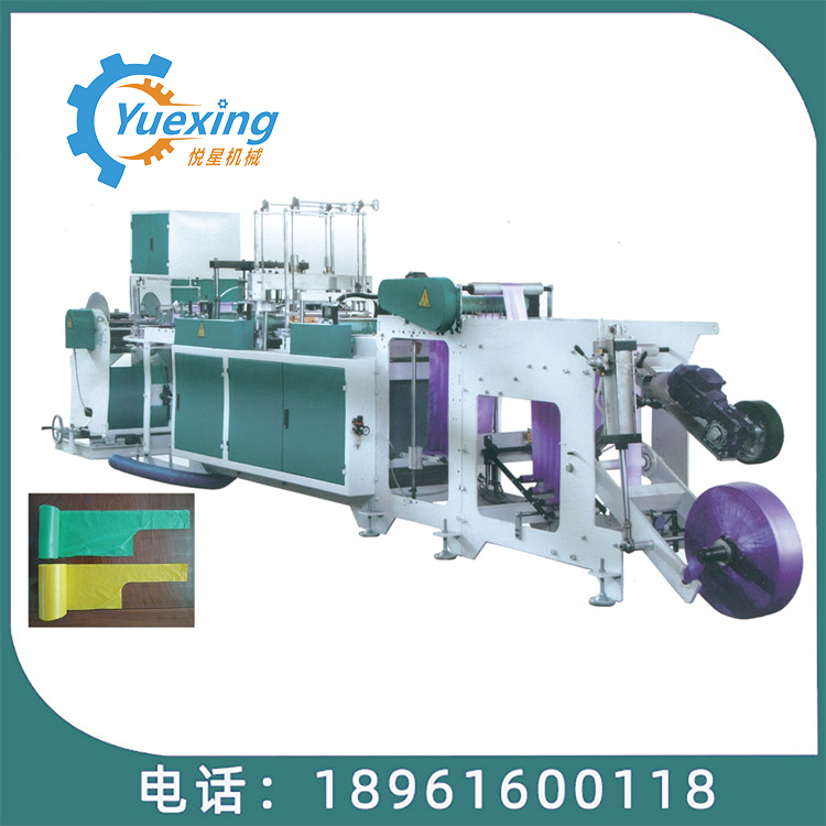 機(jī)器特性 此設(shè)備為生產(chǎn)連卷八折背心垃圾袋的專用設(shè)備,單通道高速無(wú)拉伸,操作簡(jiǎn)單,底封好,收卷整齊,個(gè)數(shù)準(zhǔn)確,手動(dòng)收卷。 此設(shè)備采用全鋼板一體而成,用電220V照明電即可。