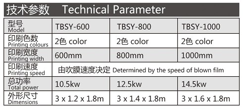 機器特性 根據塑料外資企業要求,生產的雙色印刷機。主要配套在吹膜機上使用,具有快捷、便利、高效的特點,使吹膜印刷一起完成。